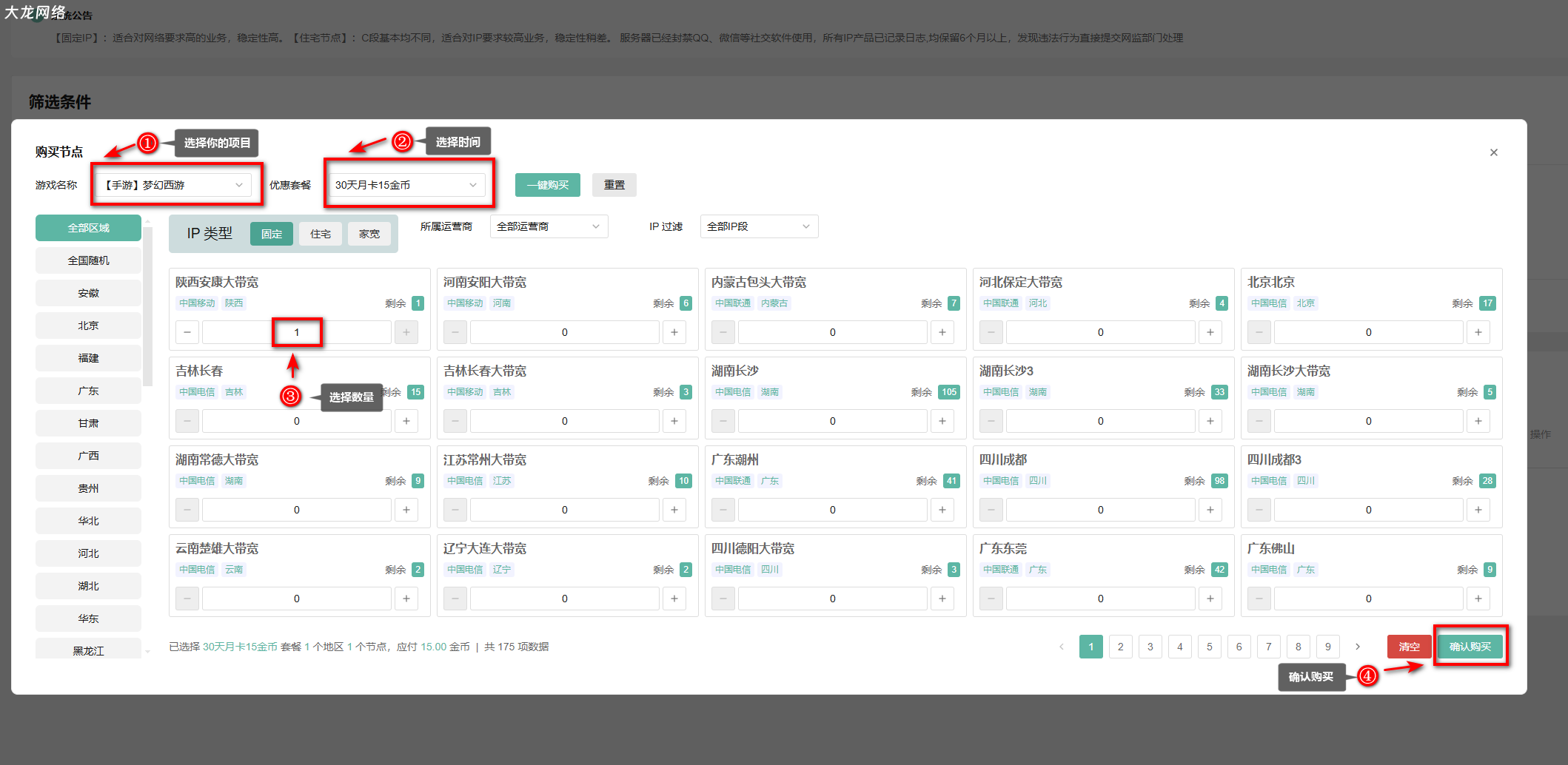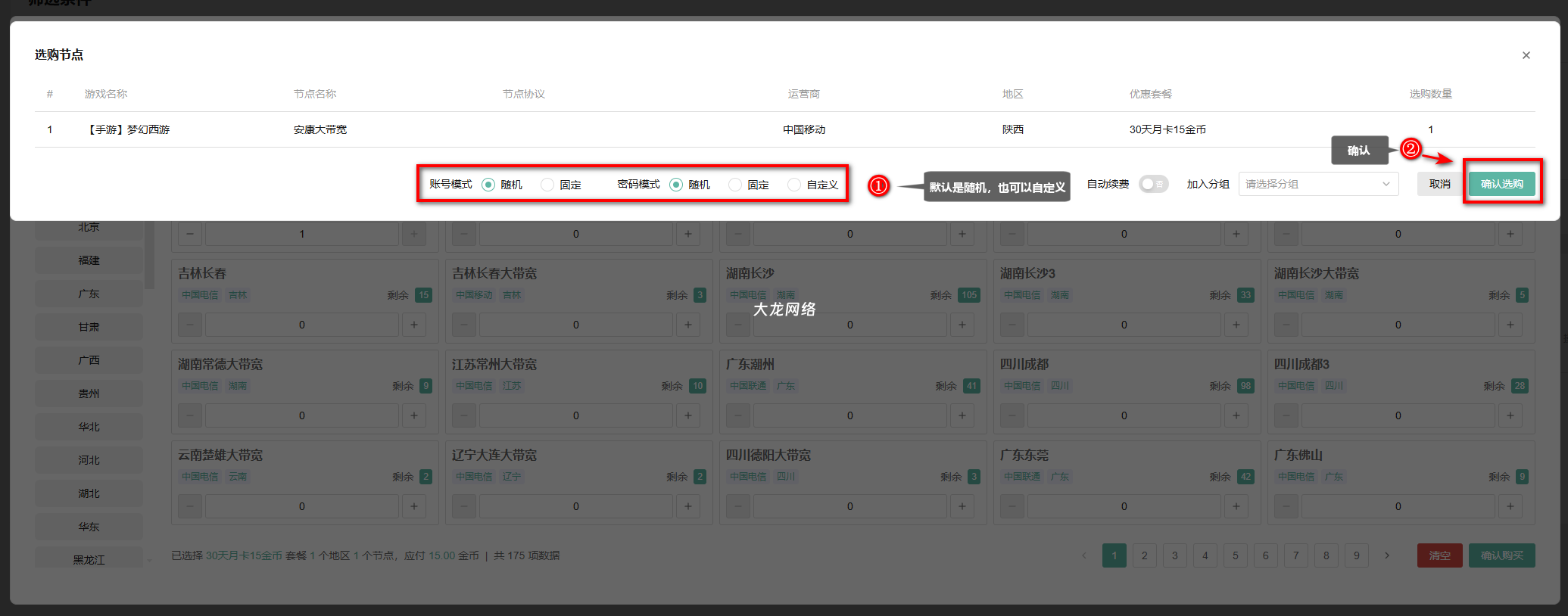 ➤确认订单→账号和密码可默认、可随机→确认选购→然后复制提取
